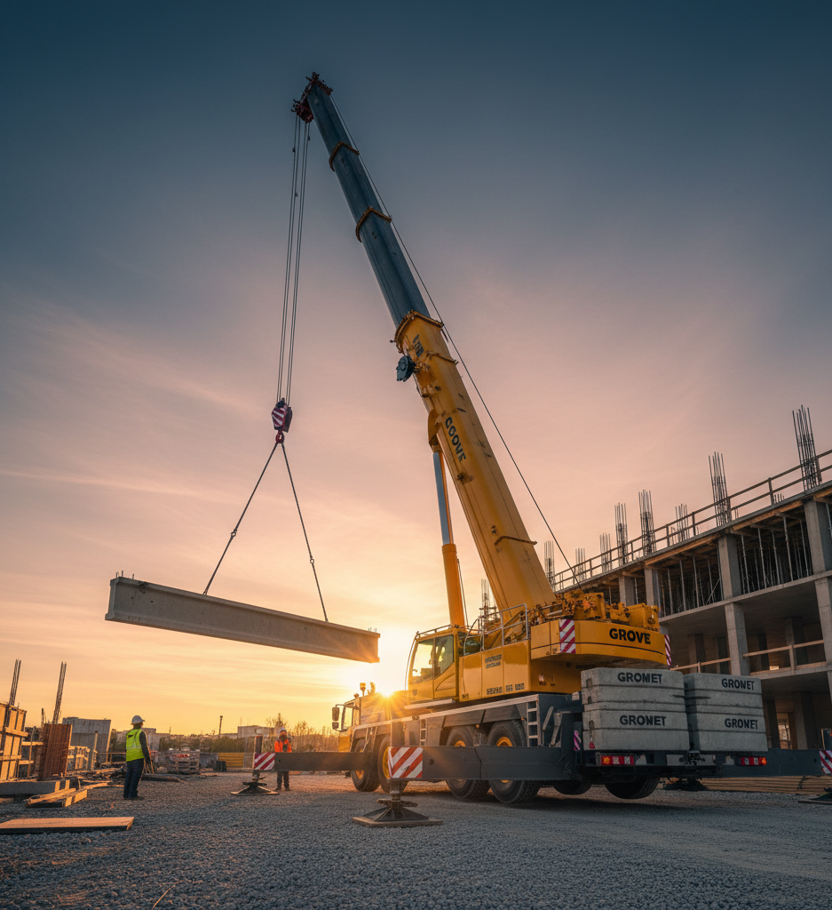 Ce type d’engin est indispensable pour la manipulation d’éléments en béton précontraint ou de modules métalliques de grande envergure utilisés dans le secteur tertiaire. Sa capacité résiduelle à longue portée permet de positionner des charges lourdes à des distances horizontales inaccessibles pour les modèles plus légers. C’est l’outil de prédilection pour le montage de grues à tour ou la mise en place de transformateurs électriques de moyenne puissance.