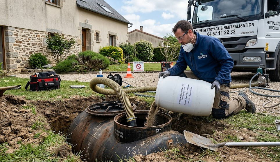 Le processus débute impérativement par une vidange complète des boues résiduelles, suivie d’un nettoyage haute pression et d’un dégazage minutieux. Cette étape permet d’éliminer les vapeurs de carburant en suspension, rendant ainsi la structure inerte avant que le technicien ne procède aux tests d’explosimétrie nécessaires.